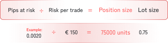 Position sizing is a sort of calculations that lead to taking optimal units on a trade due to your risk limit and the trading set up. For instance, with a risk limit of €150 and 20 pips at risk, the proper position size to buy EURUSD at 1.19500 is figured like this: Risk limit per trade / Pips at risk = 75000 units of base currency or 0.75 lot.